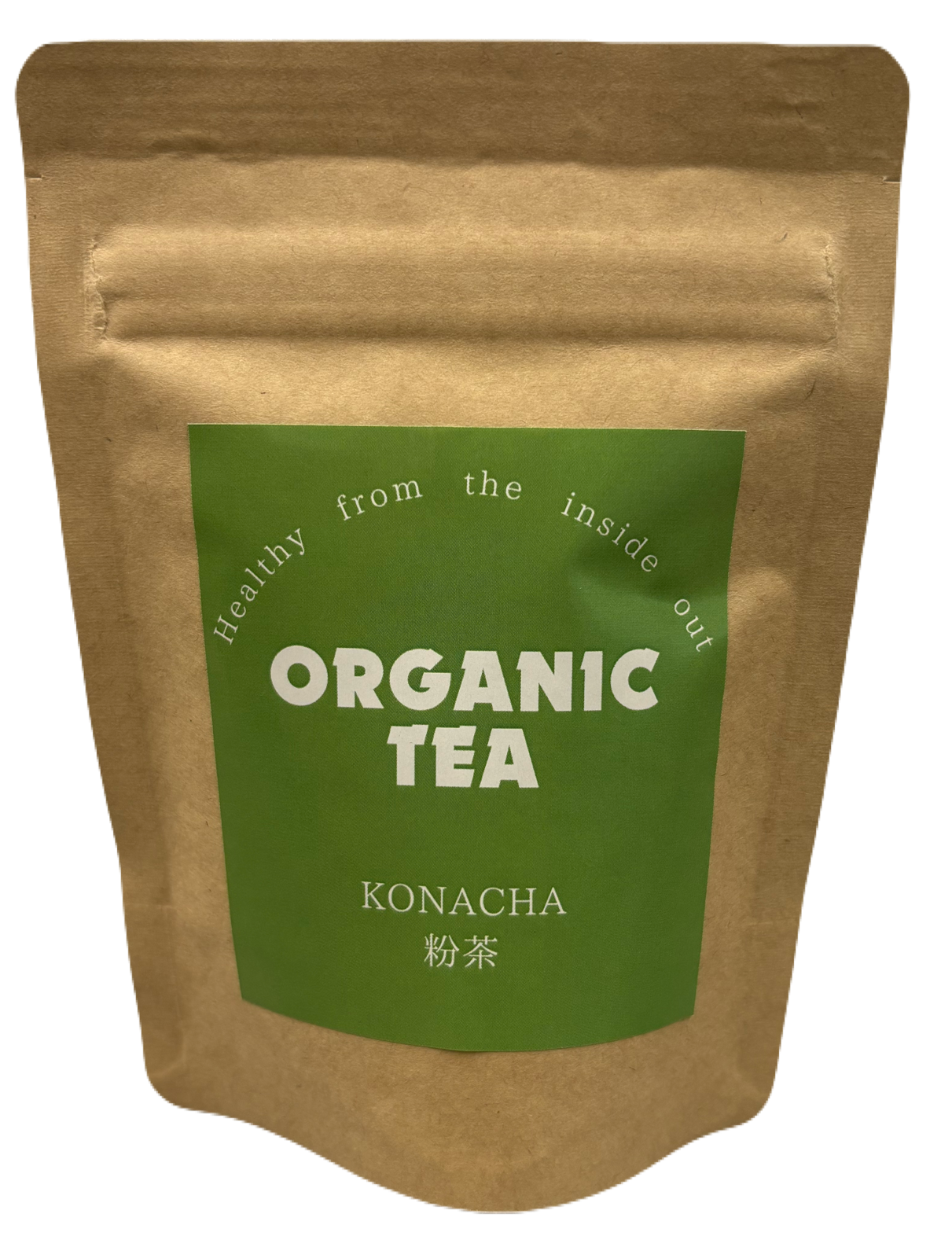 静岡県伊久美の無農薬茶葉を使用した「ORGANIC TEA KONACHA」。この粉茶は、余分な活性酸素を除去するSOD値が高いのが特徴です。まさに、健康を考えた方にぴったりの一品です。